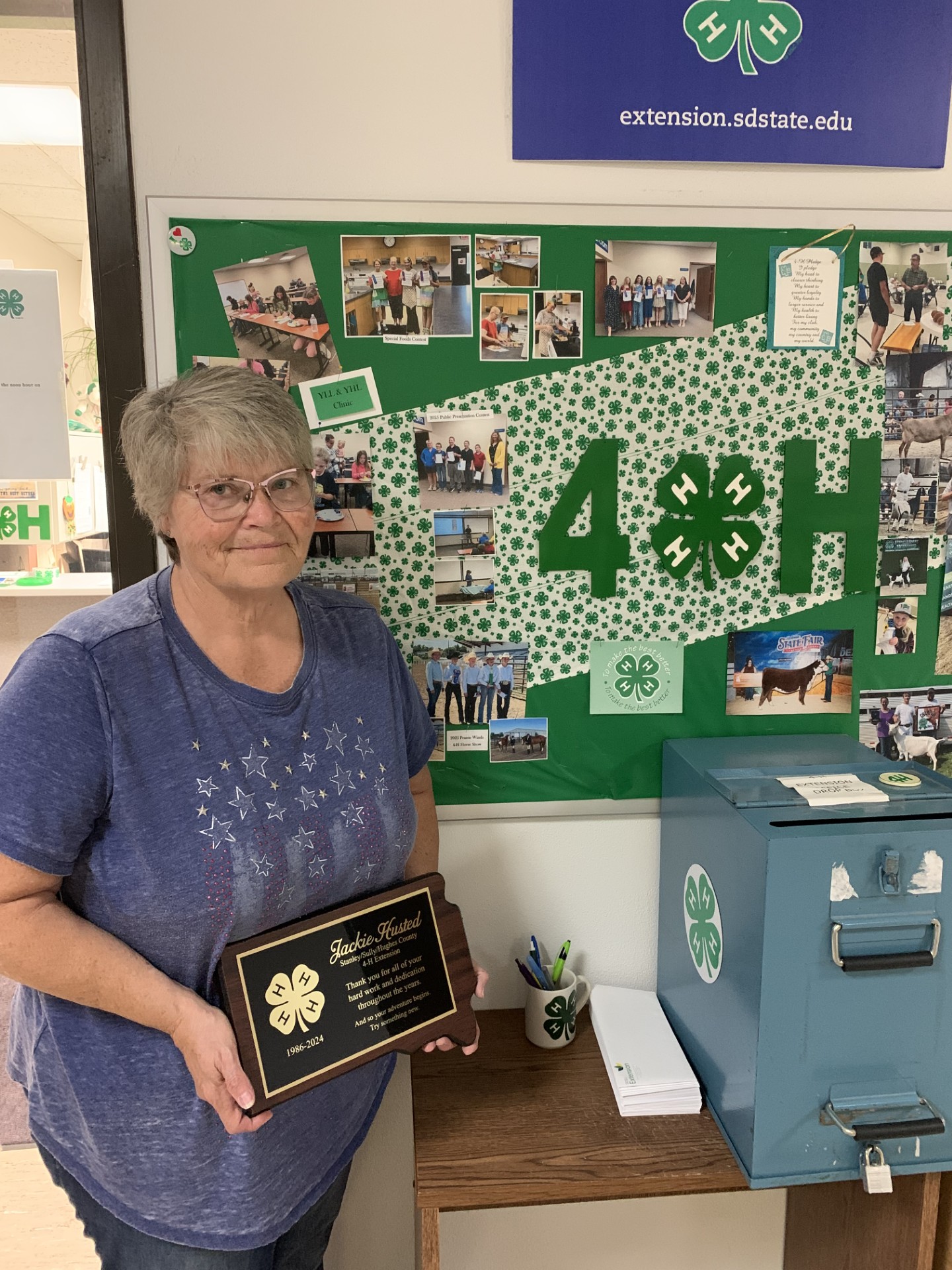 Jackie has been with 4-H/Extension since 1986, working with youth and adult volunteers in Hughes, Stanley and Sully communities, enriching each one of them with the knowledge and desire to succeed.